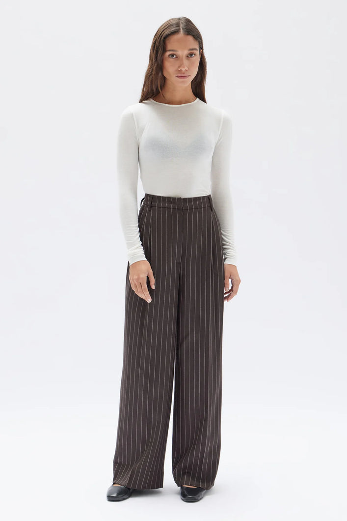 ASSEMBLY - SOFIA WOOL PINSTRIPE PANT in Chestnut stripe