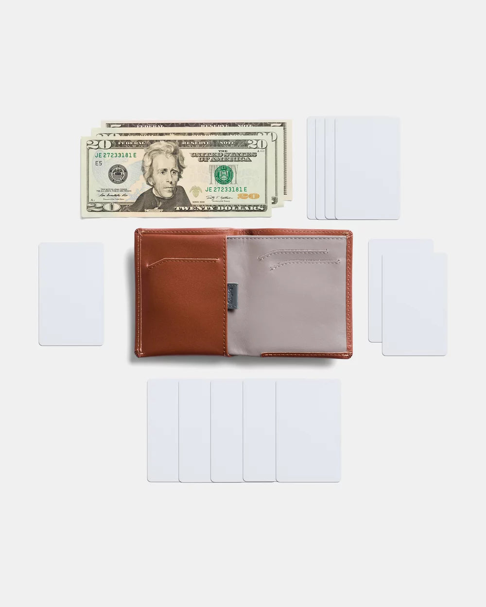 A traditional design with surprising storage, the Note Sleeve holds cards, bills and coins in a trim, professional billfold.