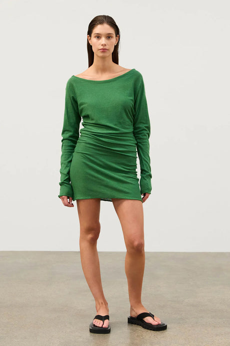 ZULU & ZEPHYR - TALLOW GREEN GATHERED KNIT DRESS