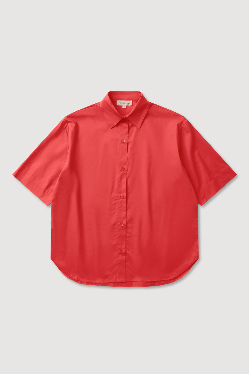 The Joni Short Sleeve Shirt in chilli is a lightweight 100% cotton poplin shirt with an oversized fit, button front, and shaped hem.